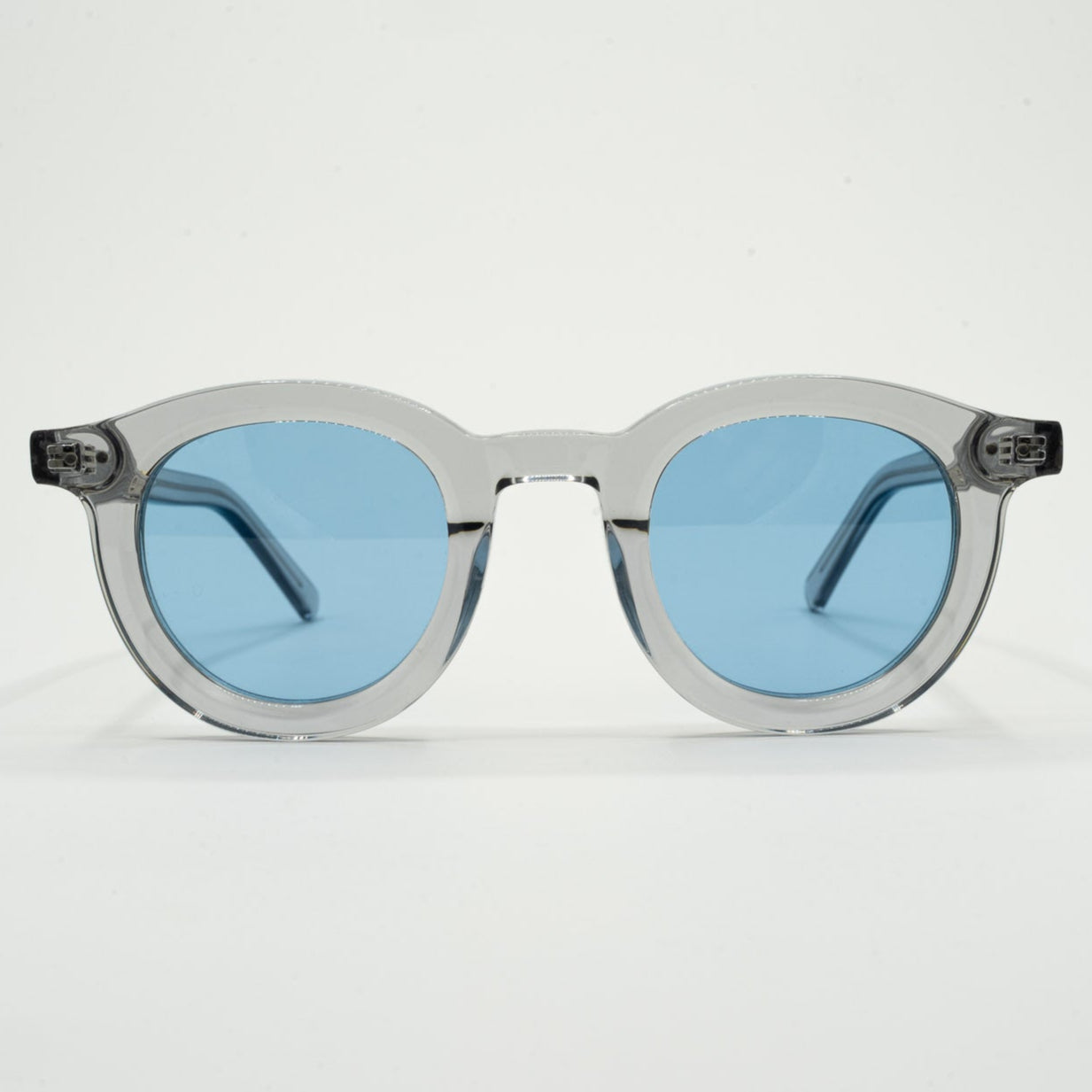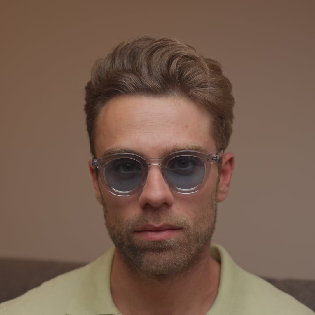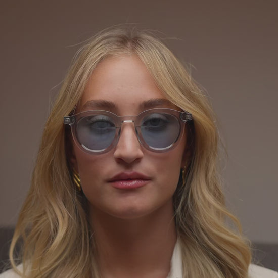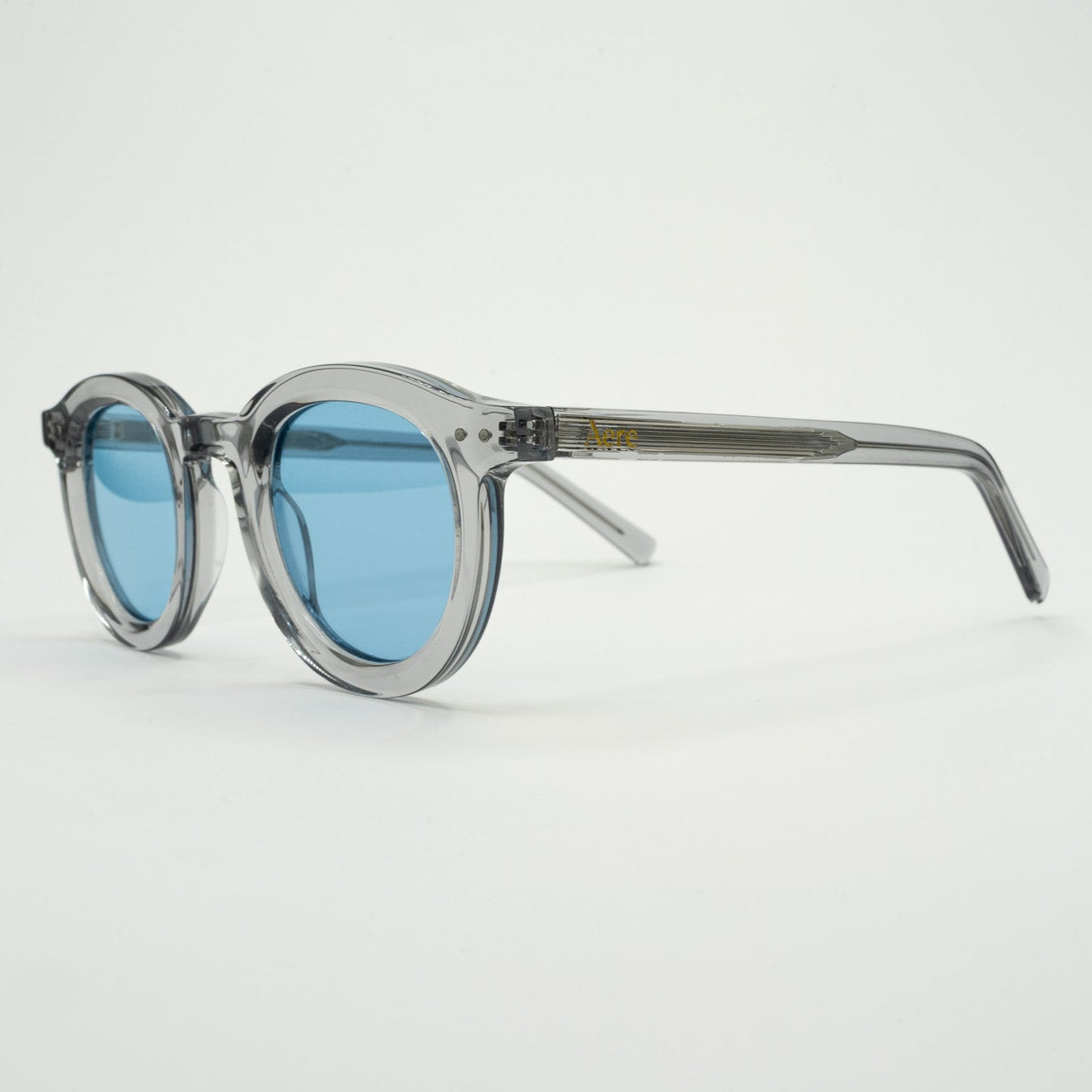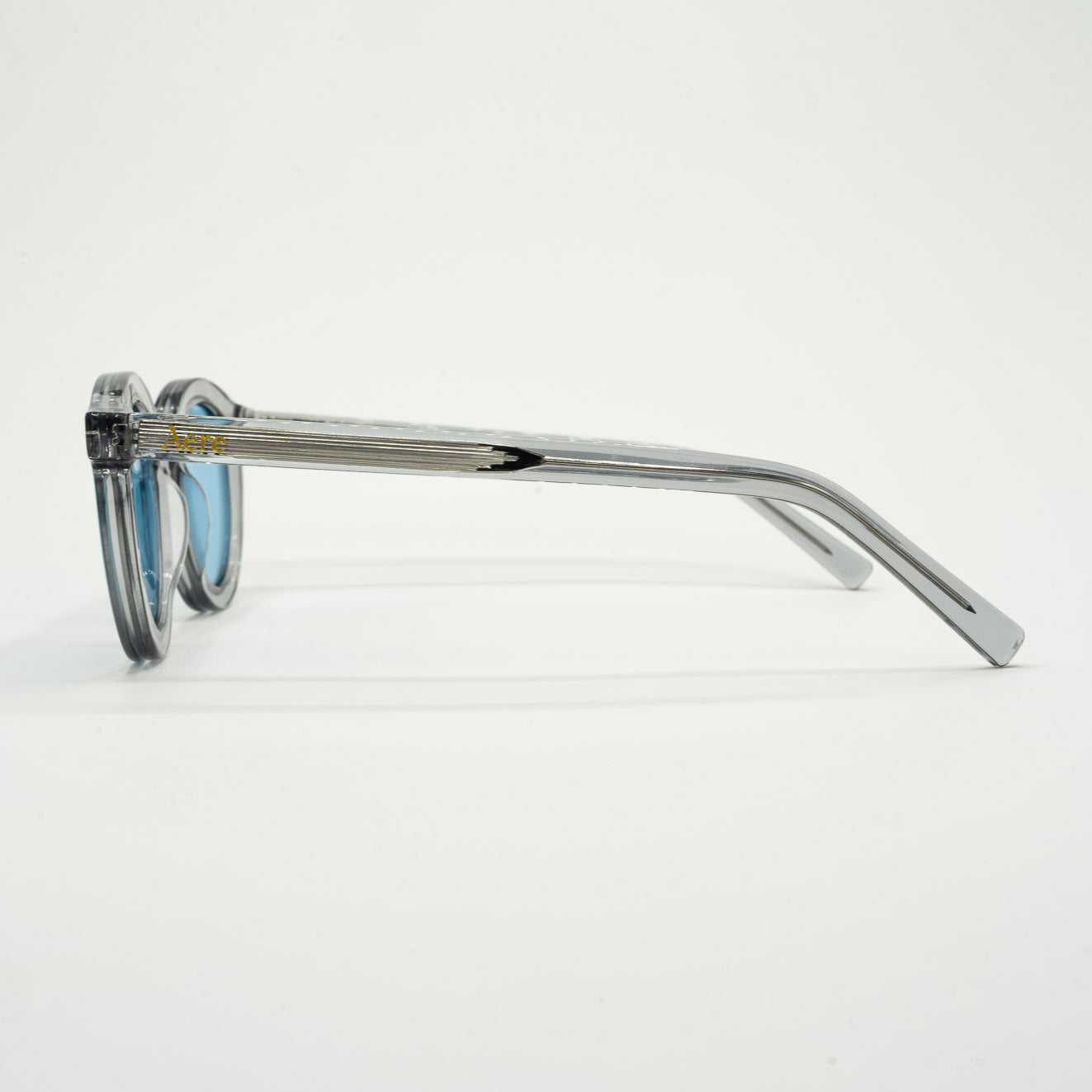 A modern classic with a bold twist, the Aqua is designed for optical clarity, comfort and elevated style. With a crystal grey acetate frame and polarised blue lenses, Aqua delivers both visual impact and all-day protection. Finished with our signature logo, this pair is made for those who move with purpose and presence.